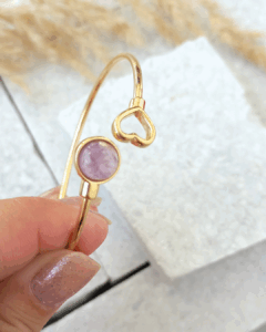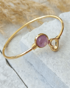 Pulseira estilo bracelete com pedra cabochão, em formato redondo de 8mm.