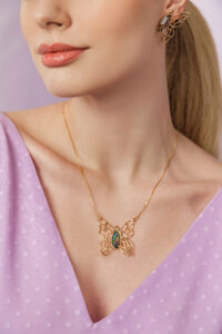 A beleza das flores e a graça delicada das borboletas são traduzidas em joias de estilo único.