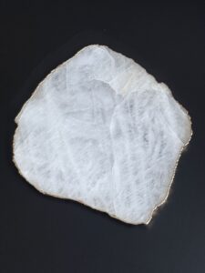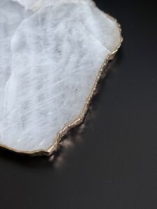 Bandeja produzida em pedra Quartzo-Branco com a borda em Ouro 24K