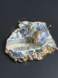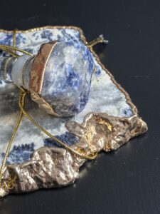 Porta-Garrafa e Stopper em Sodalita com as borda banhadas em Ouro 24K